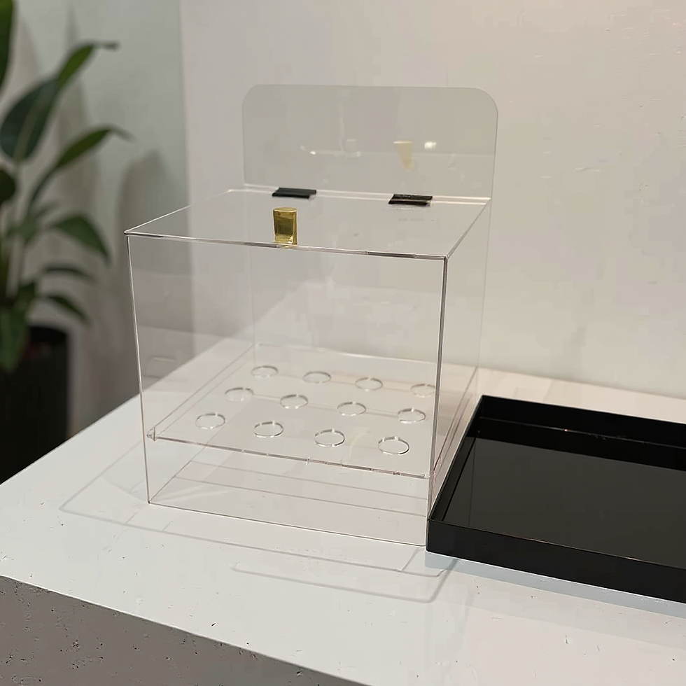 O Display Diamond com capacidade de até 100 casquinhas é feito com acrílico cristal importado, garantindo alta qualidade e durabilidade. Em formato hexagonal com dobras curvadas seu produto é visto de todos os ângulos igualmente oferecendo um acabamento diferenciado e sofisticado. Este display é versátil, contando com uma base em acrílico Black Piano removível que pode ser retirada facilitando a limpeza e manutenção do display. O puxador em alumínio dourado de excelente qualidade adiciona um toque de requinte ao produto. É a escolha perfeita para destacar e valorizar os produtos de sua vitrine ou estabelecimento.
